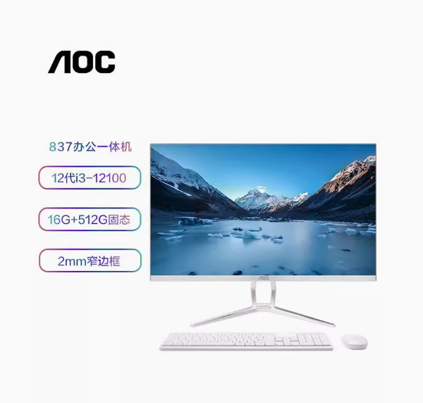 AOC 品牌一体机电脑微边框酷睿高配家用网课学习办公设计商用游戏台式整机全套 23.8"英寸I3/I5一体机