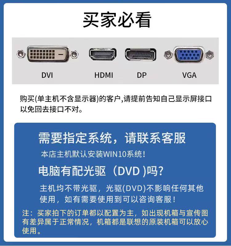 联想原装台式电脑i3 i5 i7四核家用办公商用游戏全套主机