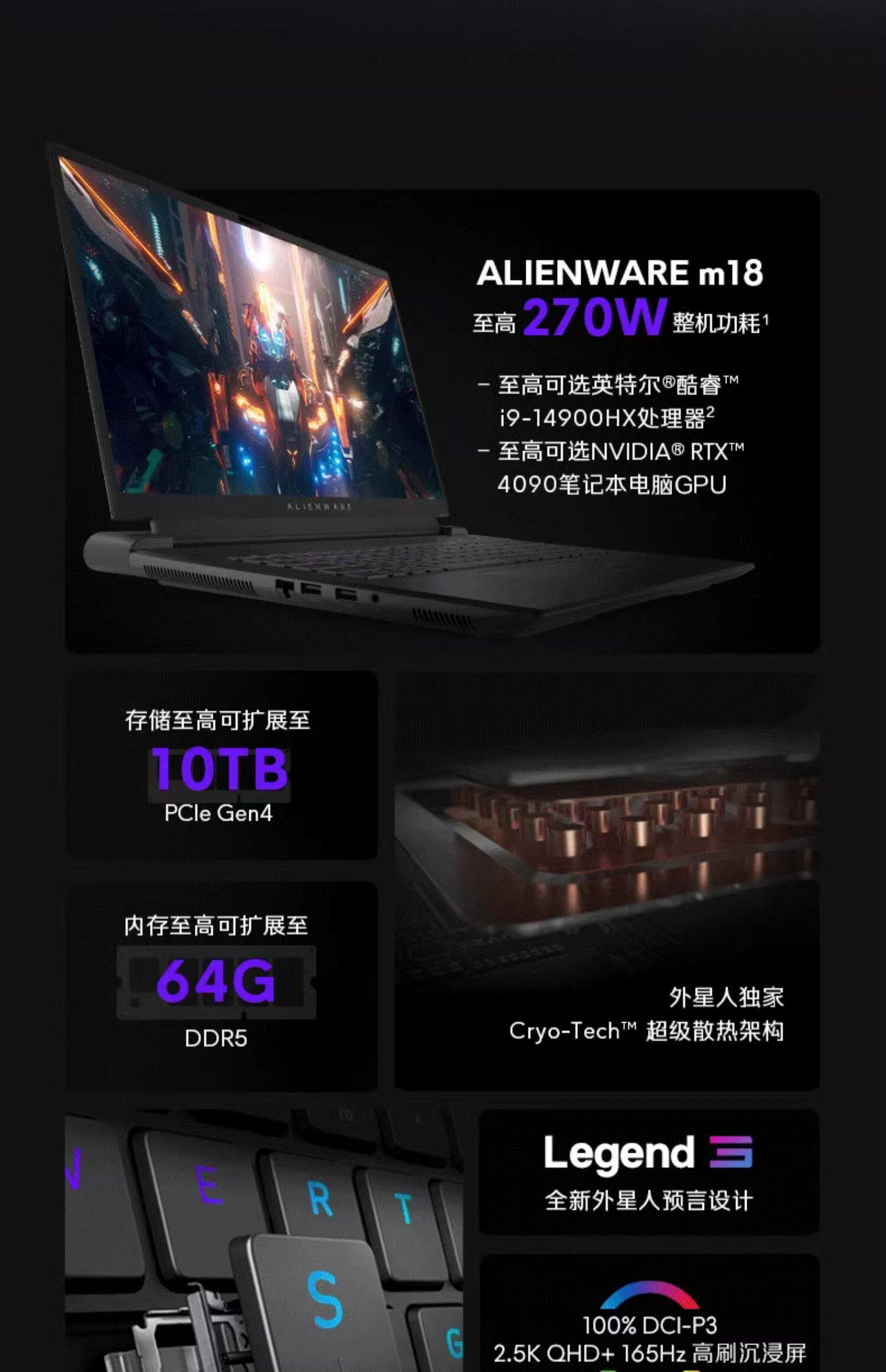 ALIENWARE外星人m18 14代酷睿i7游戏本笔记本电脑RTX4060电竞玩家学生电脑办公学习设计师