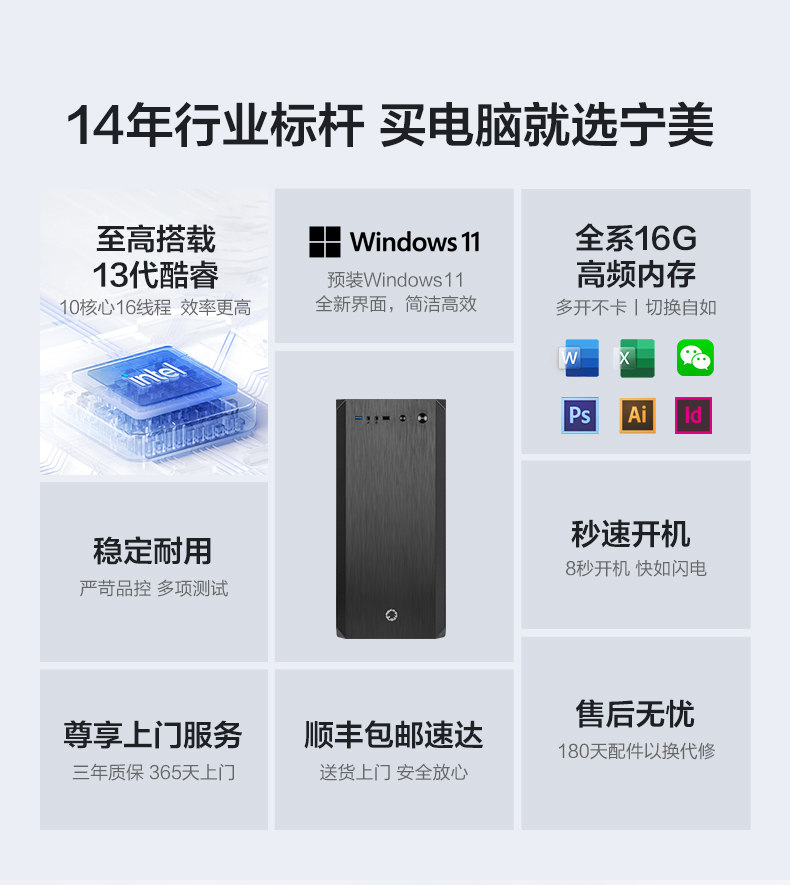 宁美国度G5905/12400F/13400F独显网课学习办公电脑主机企业采购办公游戏主机LOL游戏台式电脑DIY组装机