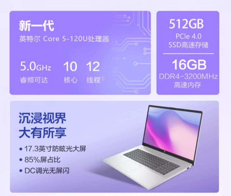 HP惠普 星Book17 17.3英寸大屏笔记本电脑 i5/i7酷睿大学生游戏设计手提商务办公惠普笔记本