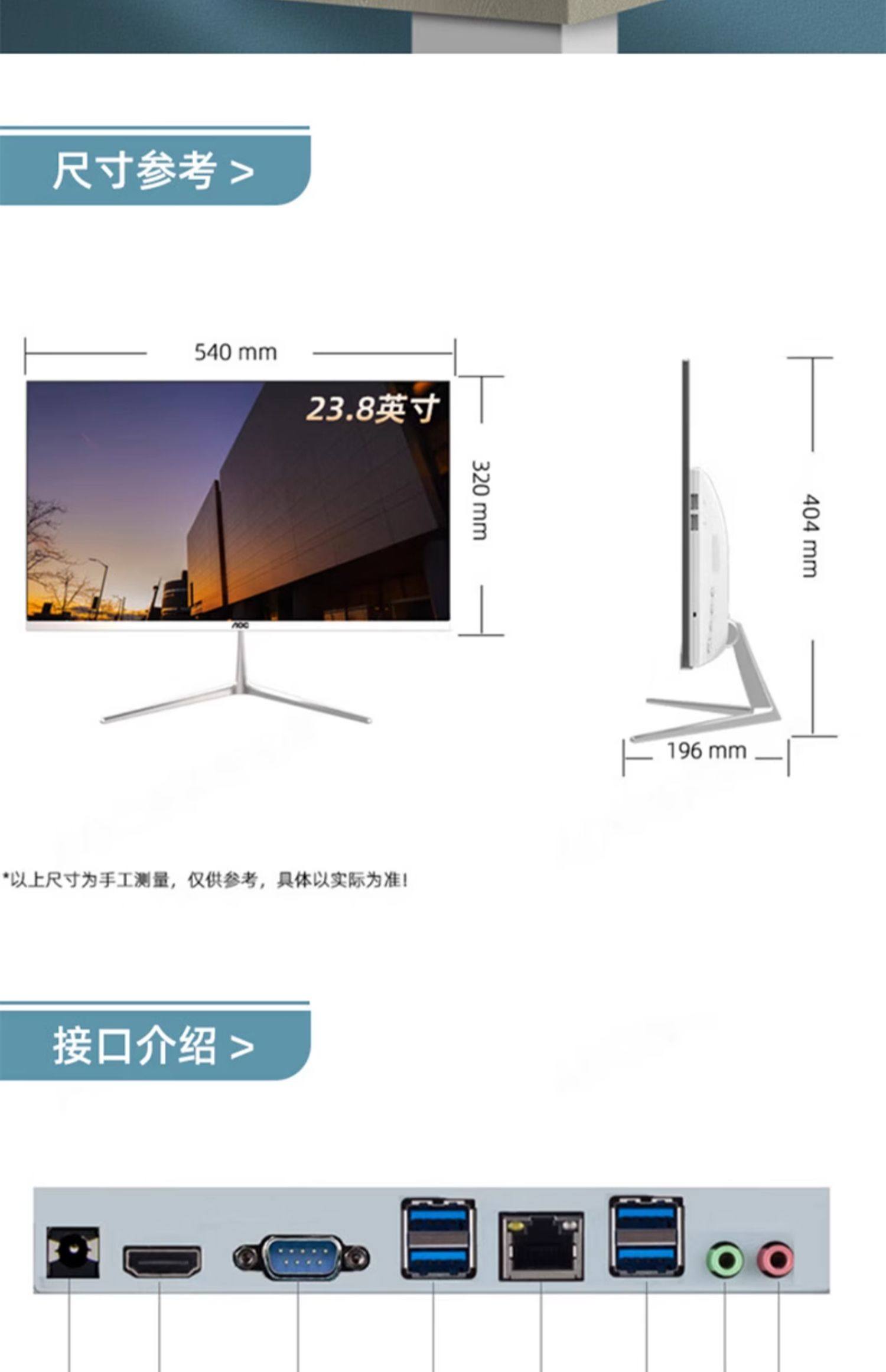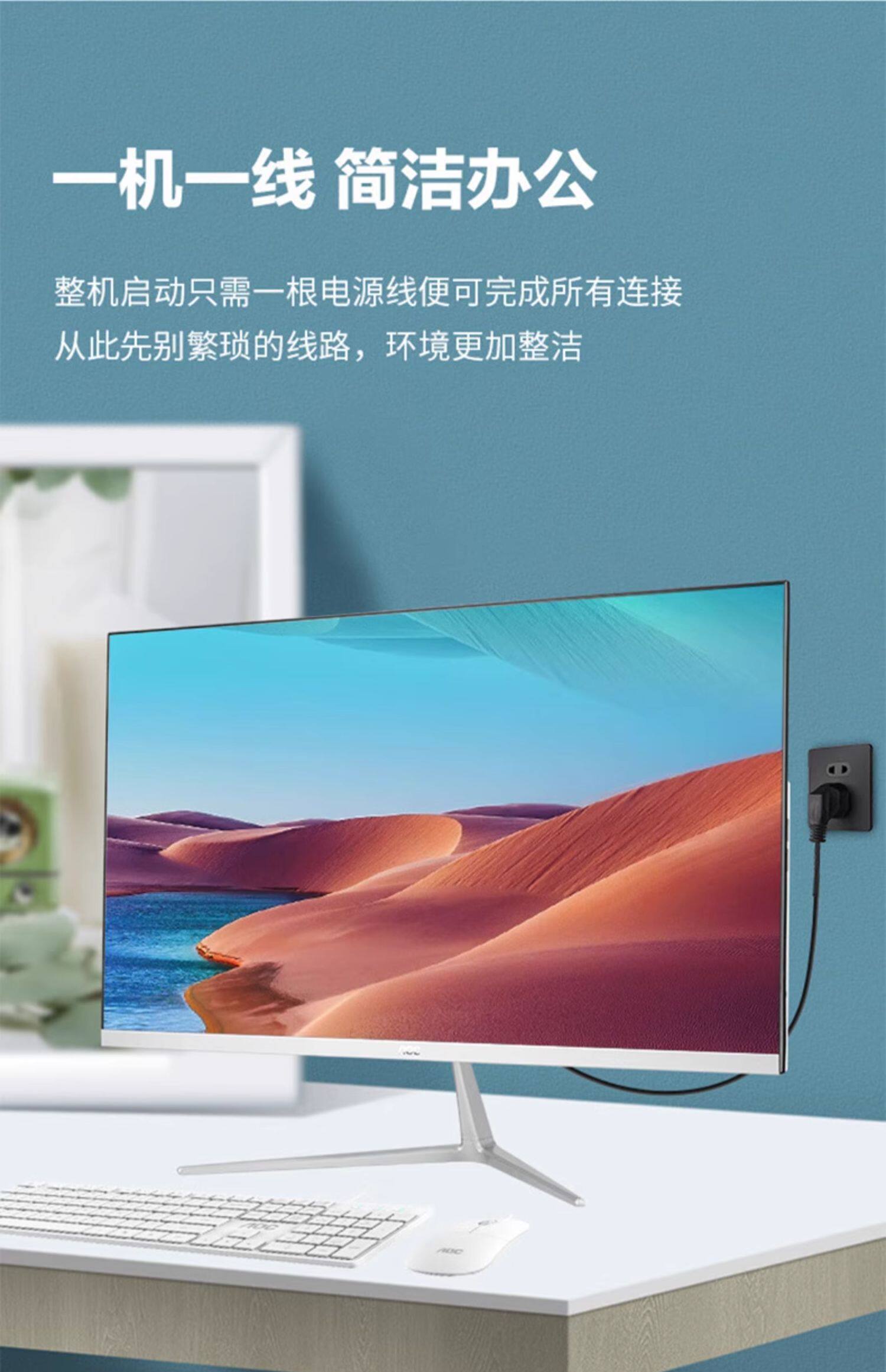 AOC 品牌一体机电脑微边框酷睿高配家用网课学习办公设计商用游戏台式整机全套 23.8"英寸I3/I5一体机